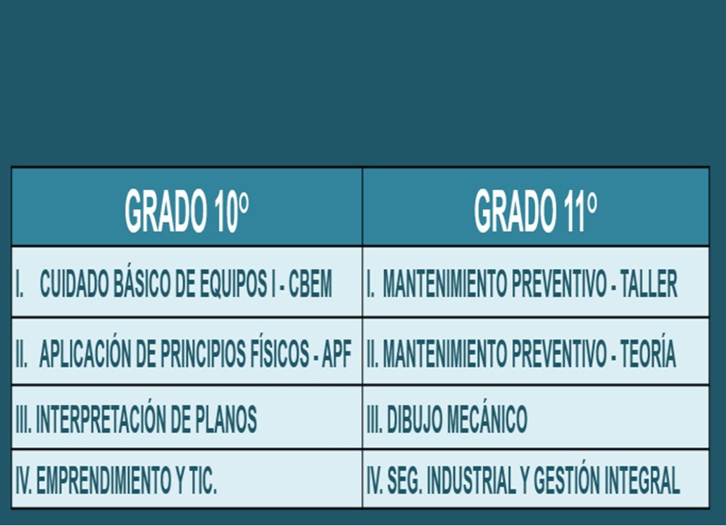 La especialidad de TÉCNICO MECÁNICO DE MAQUINARIA INDUSTRIAL está articulada con el SENA para que nuestros egresados continúen allí su proceso de formación.