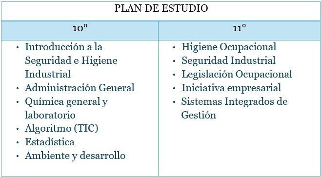 El programa de Técnico en Seguridad e Higiene Ocupacional (TSH) tiene como propósito formar profesionales con las competencias necesarias para identificar, evaluar y controlar los riesgos laborales en los entornos de trabajo, promoviendo la salud y seguridad de los trabajadores. Los estudiantes adquieren conocimientos en normativas de seguridad, gestión de riesgos, prevención de accidentes y enfermedades laborales, primeros auxilios, y sistemas de gestión de seguridad y salud en el trabajo.